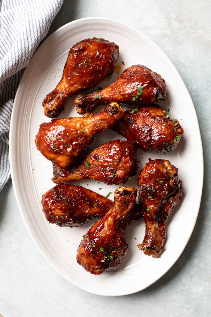 Chicken drumsticks are one of the most affordable cuts of chicken available. Slather them with BBQ sauce and bake for an easy, hands-off dinner. The meat becomes tender and falls off the bone, while the sauce caramelizes beautifully.