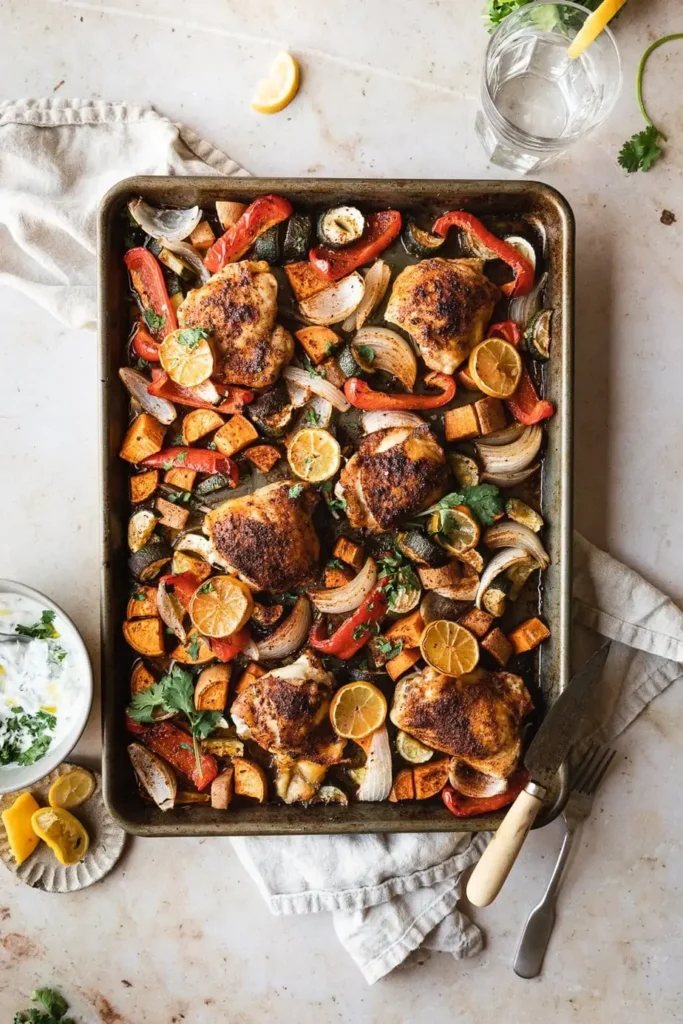 The chicken gets crispy skin while the vegetables caramelize beautifully. For about ten dollars, you get a complete, balanced meal that looks impressive. It takes about 40 minutes, but most of that is oven time requiring no effort from you.