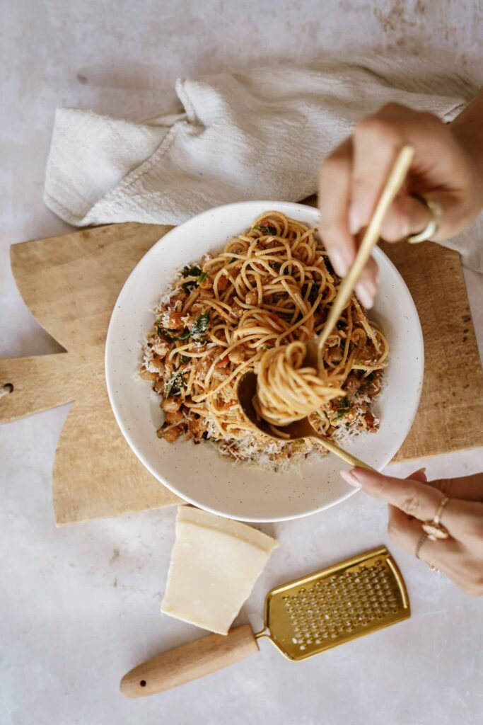 Chickpeas mashed with garlic, lemon, and olive oil create a creamy, protein-rich sauce for pasta. It’s hearty, satisfying, and has a unique flavor that’s both fresh and comforting. The chickpeas provide excellent nutrition and make the dish quite filling.