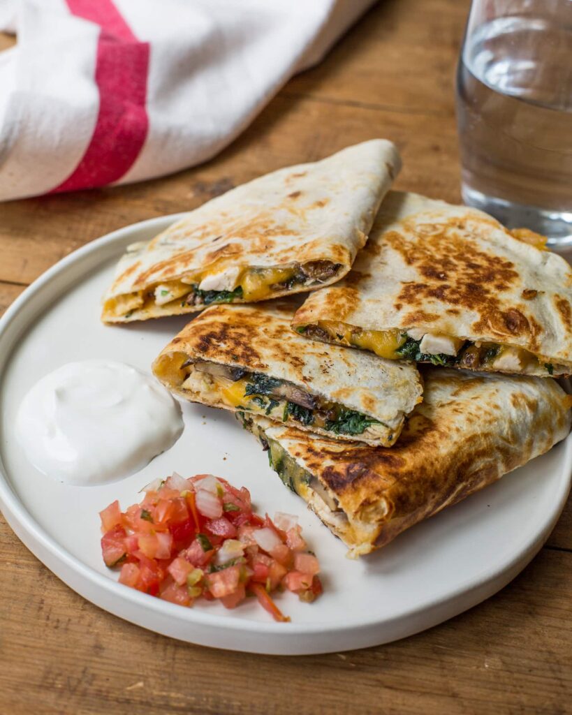 Tortillas and cheese are all you really need for these crispy, melty delights. When you pan-fry a cheese-filled tortilla, it becomes golden and crunchy on the outside while the cheese melts into gooey perfection.