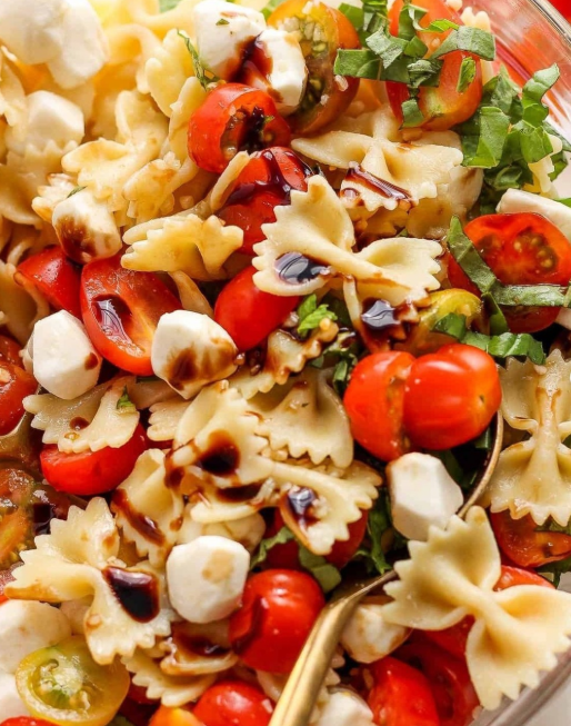 A fresh and vibrant Caprese Pasta Salad tossed with juicy tomatoes, mozzarella, and basil in a light balsamic dressing. It’s a simple yet elegant dish that tastes like summer in every bite.