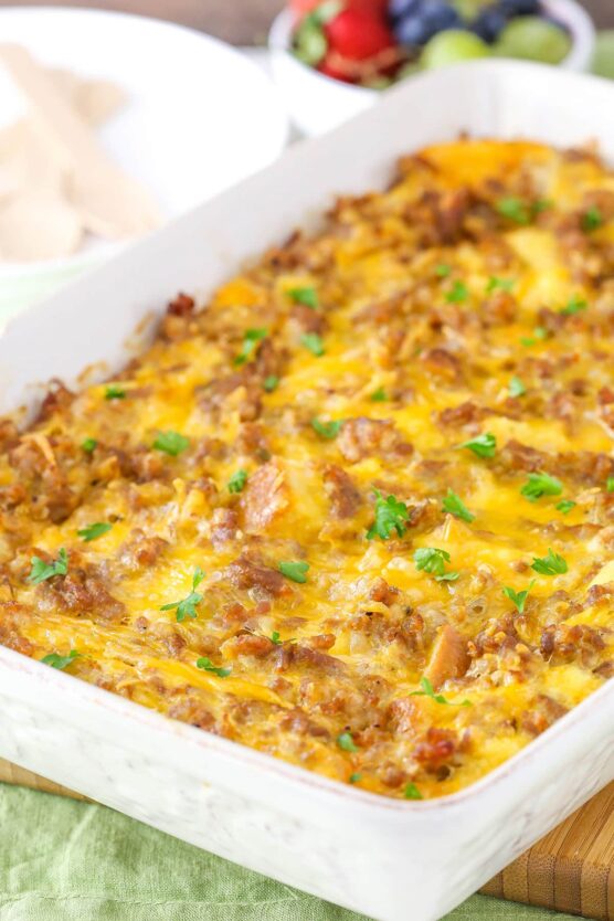 You can assemble it the night before and just pop it in the oven in the morning. The casserole stays moist and flavorful, reheating beautifully for several days.