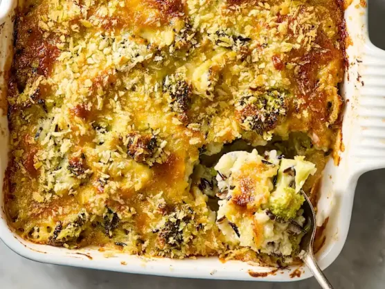 This veggie-packed casserole is a sneaky way to get everyone eating their greens without complaints. The combination of tender broccoli, fluffy rice, and plenty of melted cheese is irresistible even to vegetable skeptics.