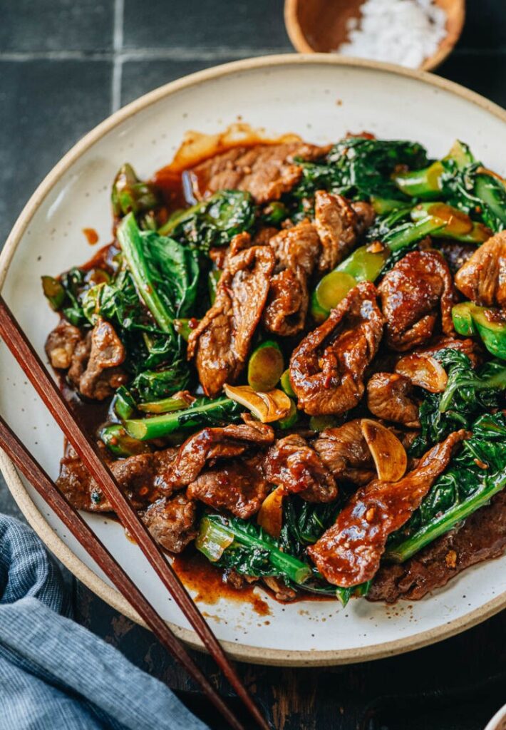 Thin-sliced beef marinates in soy sauce, sugar, and garlic then cooks super fast. Freeze the beef partially to make slicing easier. The marinade tenderizes cheap cuts of meat. Serve over rice with vegetables for a complete meal. This has complex flavors but is actually pretty simple. The sweet-salty marinade makes everything taste amazing.