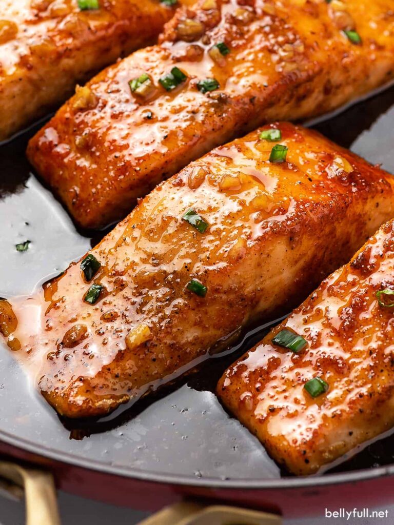 Salmon goes on sale pretty regularly and this glaze makes it taste restaurant-quality. Just honey, soy sauce, and garlic reduced down until sticky. The fish cooks quickly so watch it carefully. Even frozen salmon works fine for this. The glaze caramelizes on top and looks really professional. Serve with rice and vegetables for a complete meal.