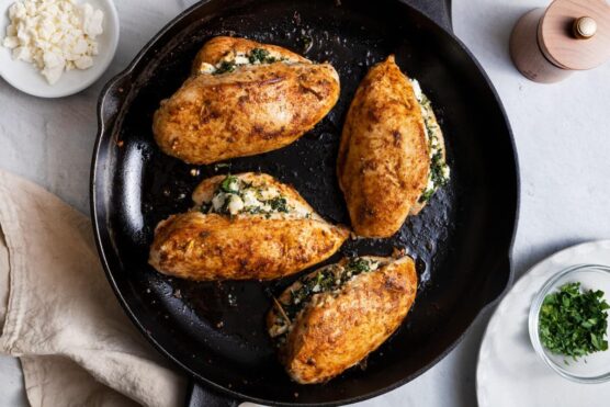 This Greek-inspired stuffed chicken is elegant enough for entertaining but simple enough for a regular Tuesday night. The creamy feta and spinach filling melts into the chicken as it cooks, creating pockets of savory goodness. It looks impressive when you slice it open, revealing that gorgeous green and white filling.