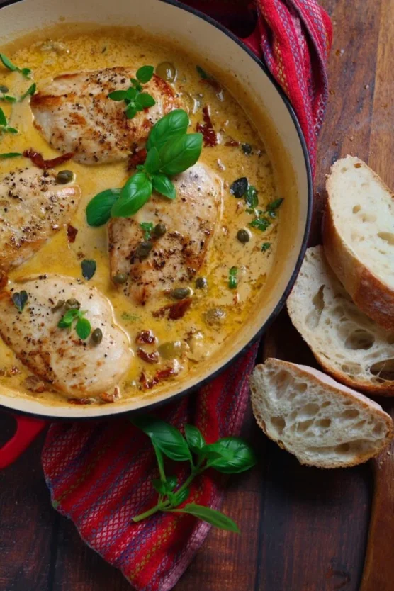 This Italian-inspired dish is packed with bright, summery flavors that feel sophisticated yet approachable. The sun-dried tomatoes add an intense, concentrated flavor that pairs beautifully with fresh basil. It comes together quickly in one pan and tastes like something from a cozy Italian trattoria.