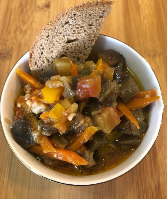 I threw everything into a pot one evening- eggplant, carrots, onion, garlic, and that lonely red pepper scrap and the smell that filled my kitchen was pure magic. The eggplant turned silky, the tomato broke down into a gentle sauce, and the carrots brought a quiet sweetness that tied it all together. No fancy ingredients, no panic, just a pot of cozy, earthy stew that made me feel like I actually knew what I was doing.