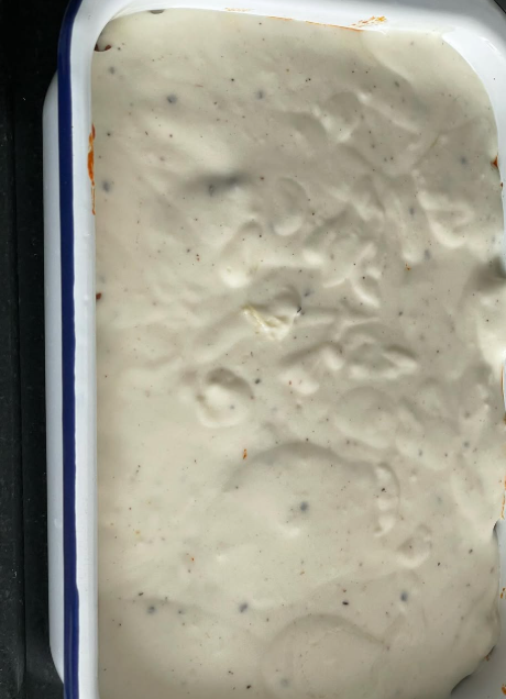 - Pour the béchamel over the top and smooth it out with a spatula.