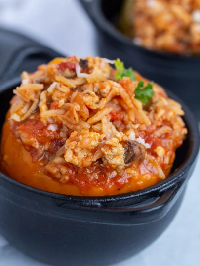Colorful bell peppers become edible bowls for seasoned ground turkey and rice. The peppers soften perfectly while maintaining enough structure to hold the filling. This is naturally low in fat but high in flavor and visual appeal. You can easily customize the filling with different grains or add more vegetables.