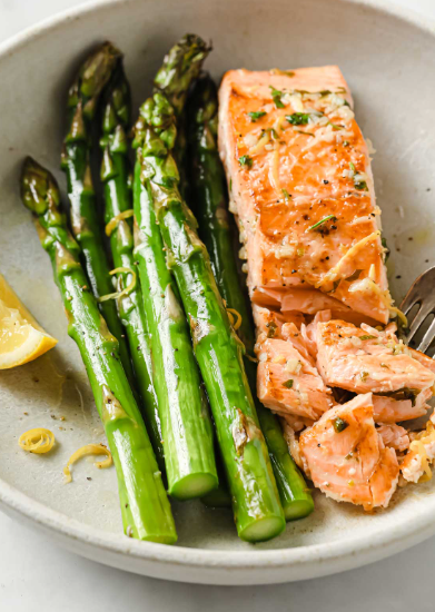 Fatty fish like salmon are actually heart-healthy, and this preparation keeps things simple and clean. The salmon stays moist and flaky while the asparagus roasts to perfection on the same pan. A drizzle of lemon juice and sprinkle of herbs is all you need for incredible flavor.