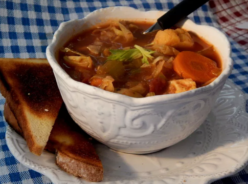 This nourishing soup is packed with colorful vegetables in a flavorful broth. It’s incredibly filling despite being very low in fat and calories. The vegetables maintain some texture, making each spoonful interesting and satisfying.