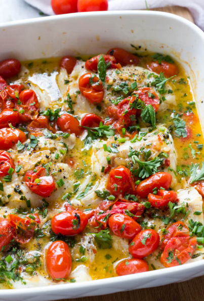 Baked Cod with Tomatoes and Herbs