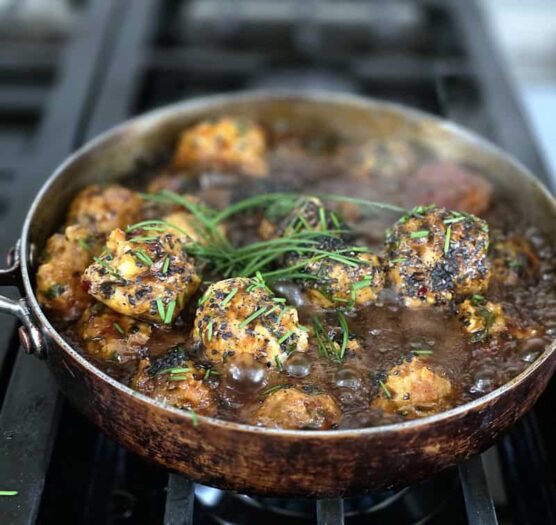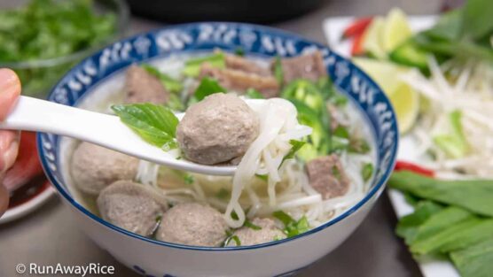 This Vietnamese-inspired soup features aromatic broth with star anise, ginger, and herbs surrounding tender meatballs and noodles. It’s lighter than traditional pho but just as flavorful and satisfying. The fresh herbs and lime juice added at the end brighten everything up beautifully.