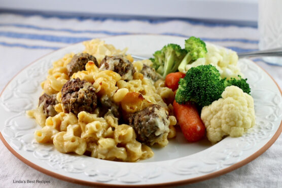 Two comfort food favorites join forces in this ultimate kid-pleaser that adults secretly love too. Creamy mac and cheese gets studded with meatballs for added protein and heartiness. It’s a one-pot meal that comes together quickly and satisfies everyone at the table.