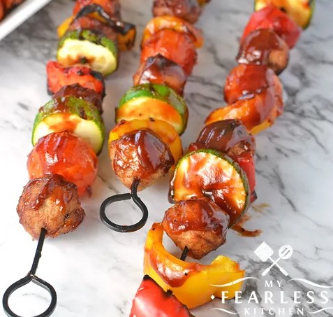 Juicy, seasoned meatballs threaded onto skewers and brushed with tangy BBQ sauce create these crowd-pleasing kabobs. Grilled or baked to perfection, each meatball develops a caramelized exterior while staying tender inside. The smoky-sweet glaze adds irresistible flavor to every bite.