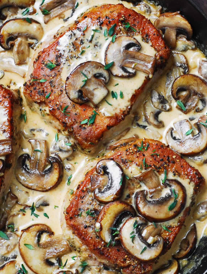 Earthy mushrooms in a rich cream sauce turn ordinary pork chops into something luxurious. The sauce is silky and flavorful, perfect for spooning over mashed potatoes or egg noodles. The mushrooms add meaty texture and umami depth that complements the pork beautifully.