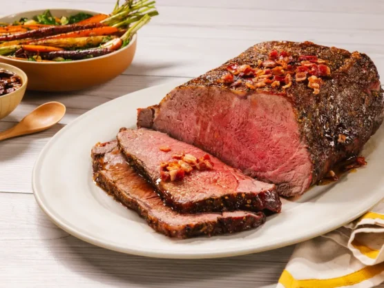 The result is a tender, perfectly seasoned prime rib with a flavorful outer layer that contrasts beautifully with the juicy, pink interior. Slow-roasted to perfection, this show-stopping centerpiece requires minimal preparation but delivers maximum impact. Serve with au jus and horseradish cream for an elegant dinner that’s surprisingly simple to execute at home.