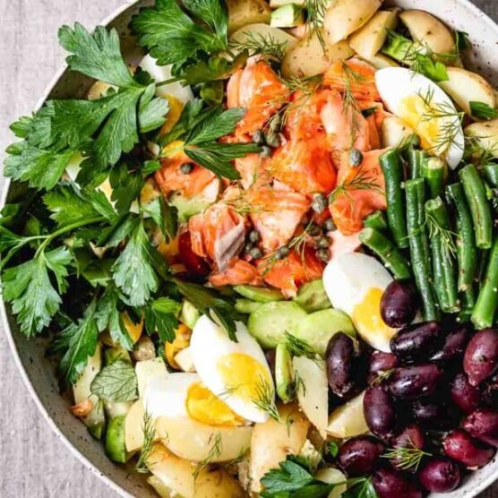 A classic Dijon vinaigrette brings brightness that complements the rich salmon beautifully. With protein, vegetables, and potatoes all in one bowl, it’s a complete meal that feels nourishing and sophisticated.