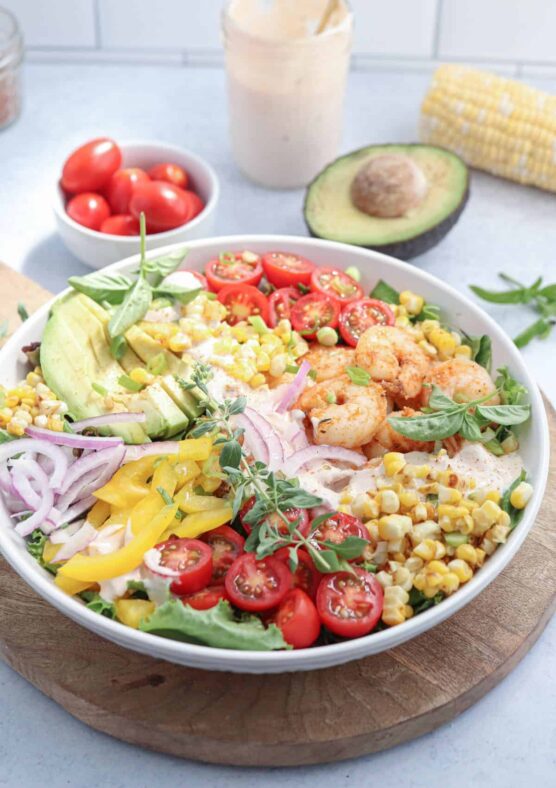 A tangy ranch or BBQ-ranch hybrid dressing ties all the bold flavors together harmoniously. It’s fun, flavorful, and feels like a backyard cookout in salad form.