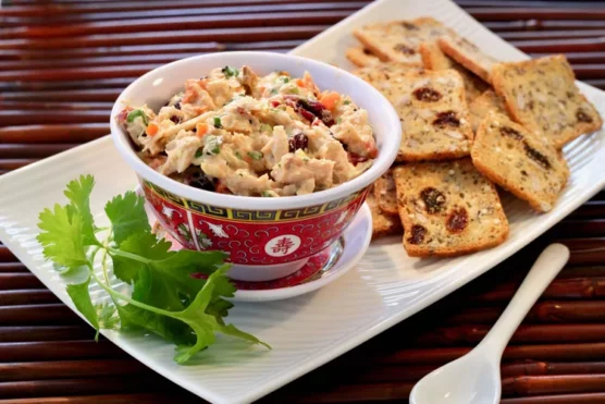 Crispy cabbage, crunchy wonton strips, and tender chicken get tossed in a sweet and tangy sesame dressing that’s absolutely addictive. The mix of textures keeps things interesting, while the Asian-inspired flavors feel vibrant and fresh.