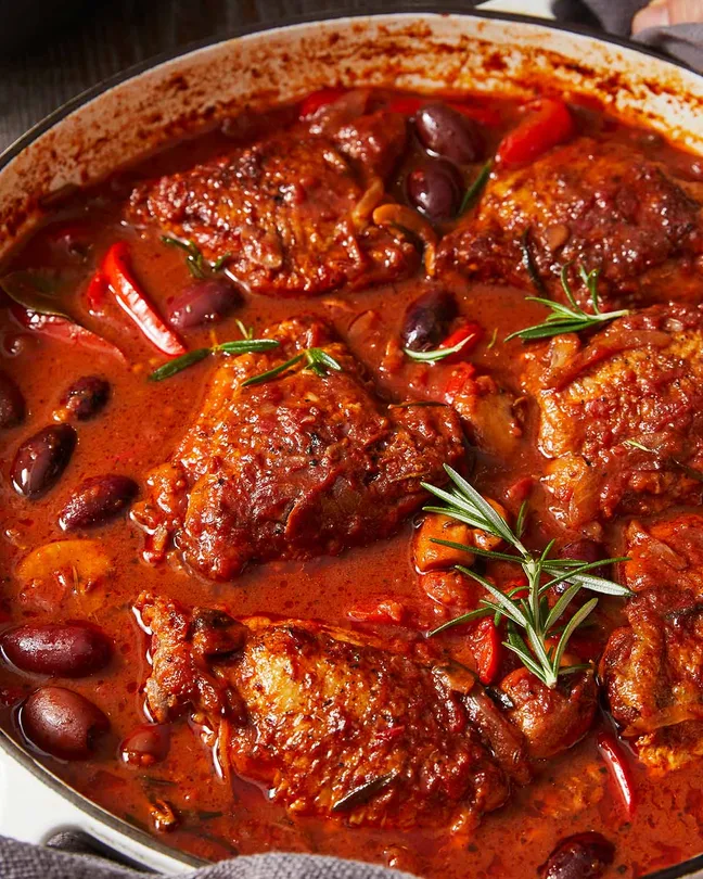This rustic Italian dish features chicken simmered in tomato sauce with peppers, onions, and olives. The sauce is savory, slightly tangy, and packed with flavor that only gets better as it cooks. It’s the kind of meal that makes your house smell like an Italian grandmother’s kitchen. Serve it over pasta, rice, or with crusty bread for a satisfying, homestyle dinner.