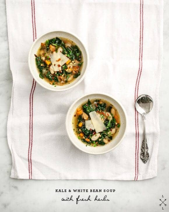 Hearty white beans and nutritious kale come together in a light but satisfying soup that’s both healthy and comforting. It’s quick to make, especially if you use canned beans, and packed with fiber and vitamins. A splash of good olive oil and some Parmesan elevate it from simple to sublime. This is the kind of soup you can feel good about eating a big bowl of.